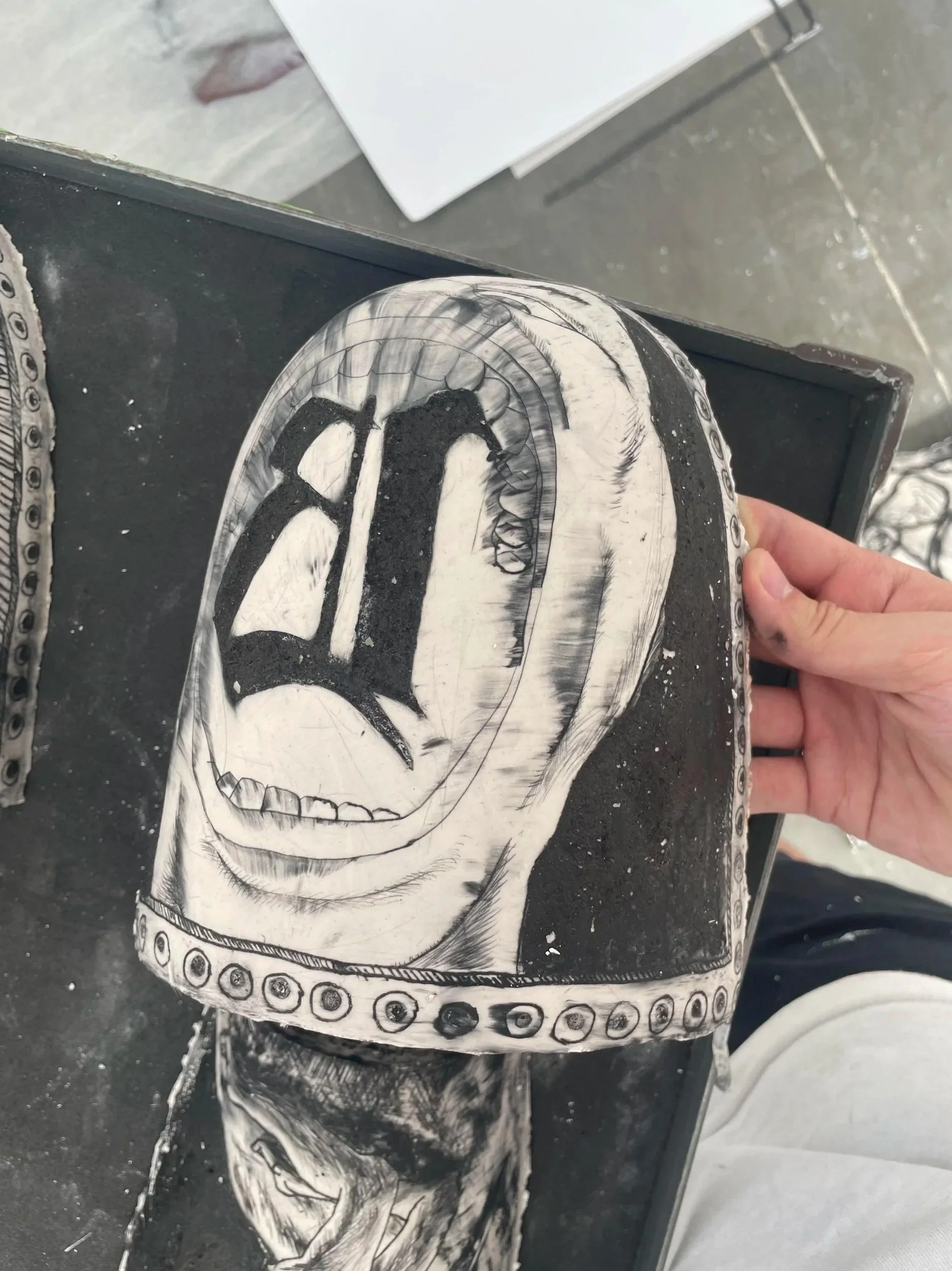 Documentation Documentation Documentation Still my favorite part! Plaster armor Forming Shape Vacuum Forming Merging problem First Time Plastering Making of forms Finger problem Bulk Vacumm Forming Discovery of Jesmonite Casting time Making Marks The Ink dilemma Inking up Detailed Shots Swinging (Etching) Throwing Everything in The Save The Disaster Summer Show Setup Hausprint Vacation Chinese Boxwood Buff Jesus Wood Engraving Alternatives Enjoying Etching Enjoying Lines The Parade Draft Hardground Stepbite Inking Realization Spirit Resist